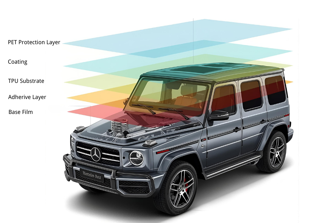 ◎Lubrizol high-stretch cast-grade TPU ensures ultra-soft material seamlessly adheres to the paint surface, completely eliminating orange peel and water ripple effects.